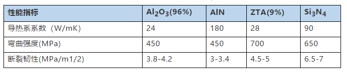 功率模塊絕緣材料選擇的主要性能是導(dǎo)熱系數(shù),彎曲強度和斷裂韌性。高導(dǎo)熱率是功率模塊快速散熱的關(guān)鍵,同時,抗彎強度對于陶瓷基板在封裝流程中的處理和使用非常重要,而斷裂韌性是預(yù)測可靠性的關(guān)鍵。