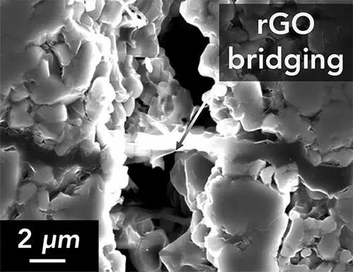 然而,固態(tài)電池中的陶瓷電解質(zhì)是高脆性材料,在制造和使用過程中可能會斷裂。于是在這項研究中,研究人員想知道如果往陶瓷中注入石墨烯,是否可以增加材料的斷裂韌性,同時保持電解質(zhì)功能所需的電子性能。