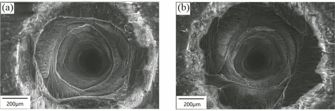 圖3 不同波長(zhǎng)激光對(duì)纖維增強(qiáng)材料的作用效果對(duì)比:(a)紅外激光;(b)紫外激光