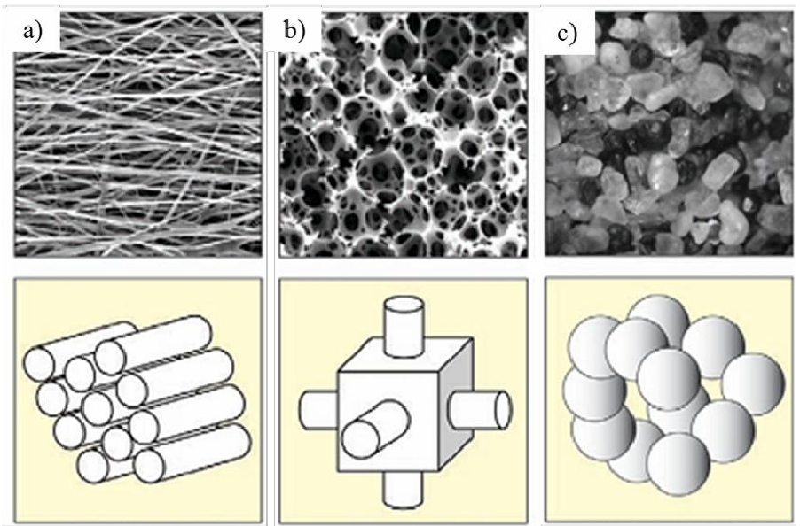 三種多孔吸聲材料結(jié)構(gòu)示意圖